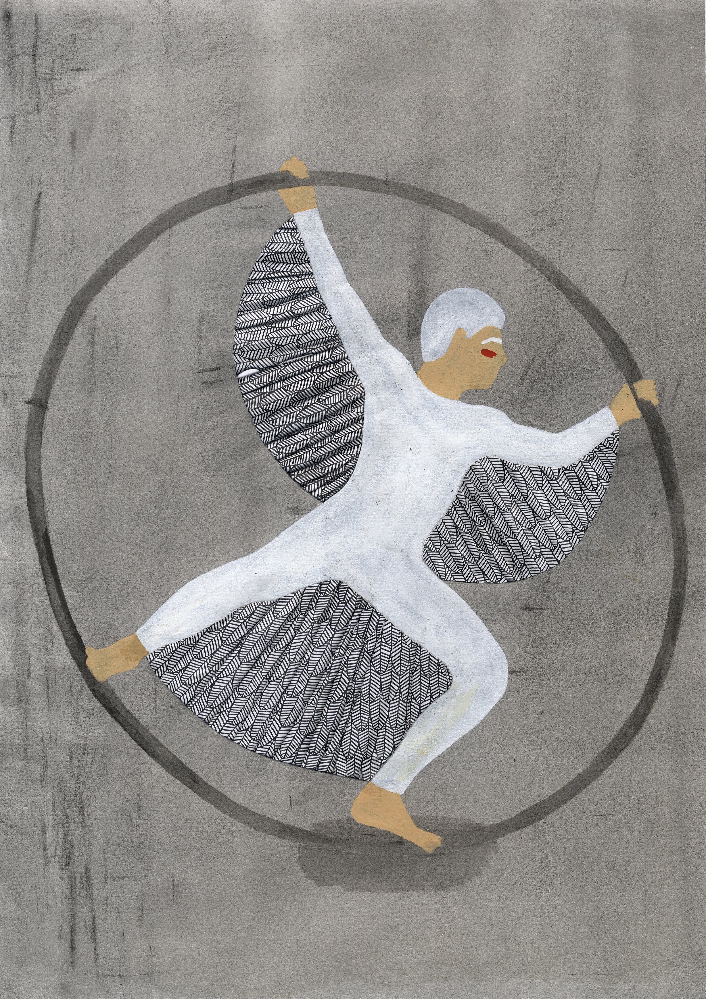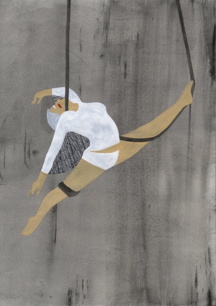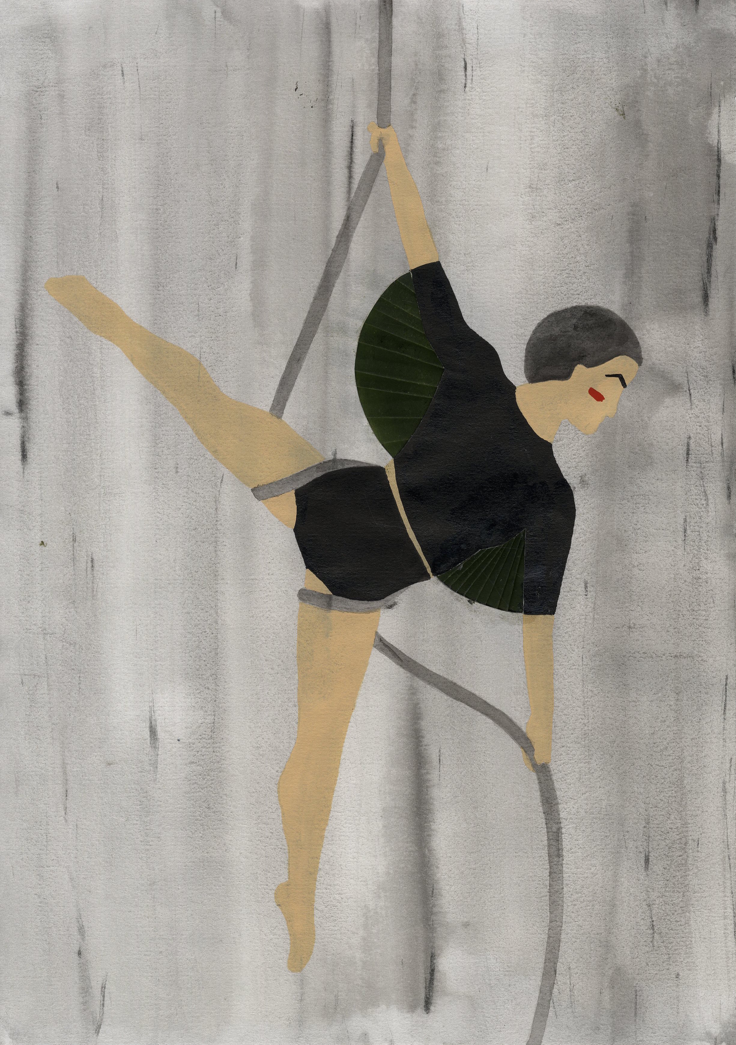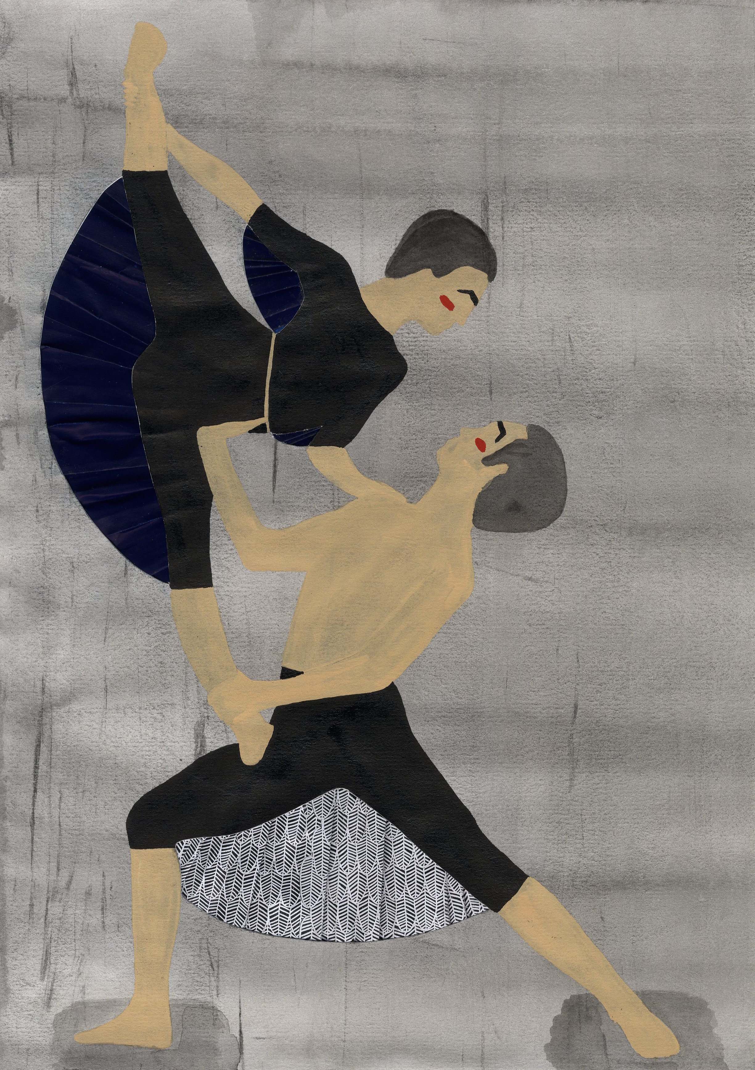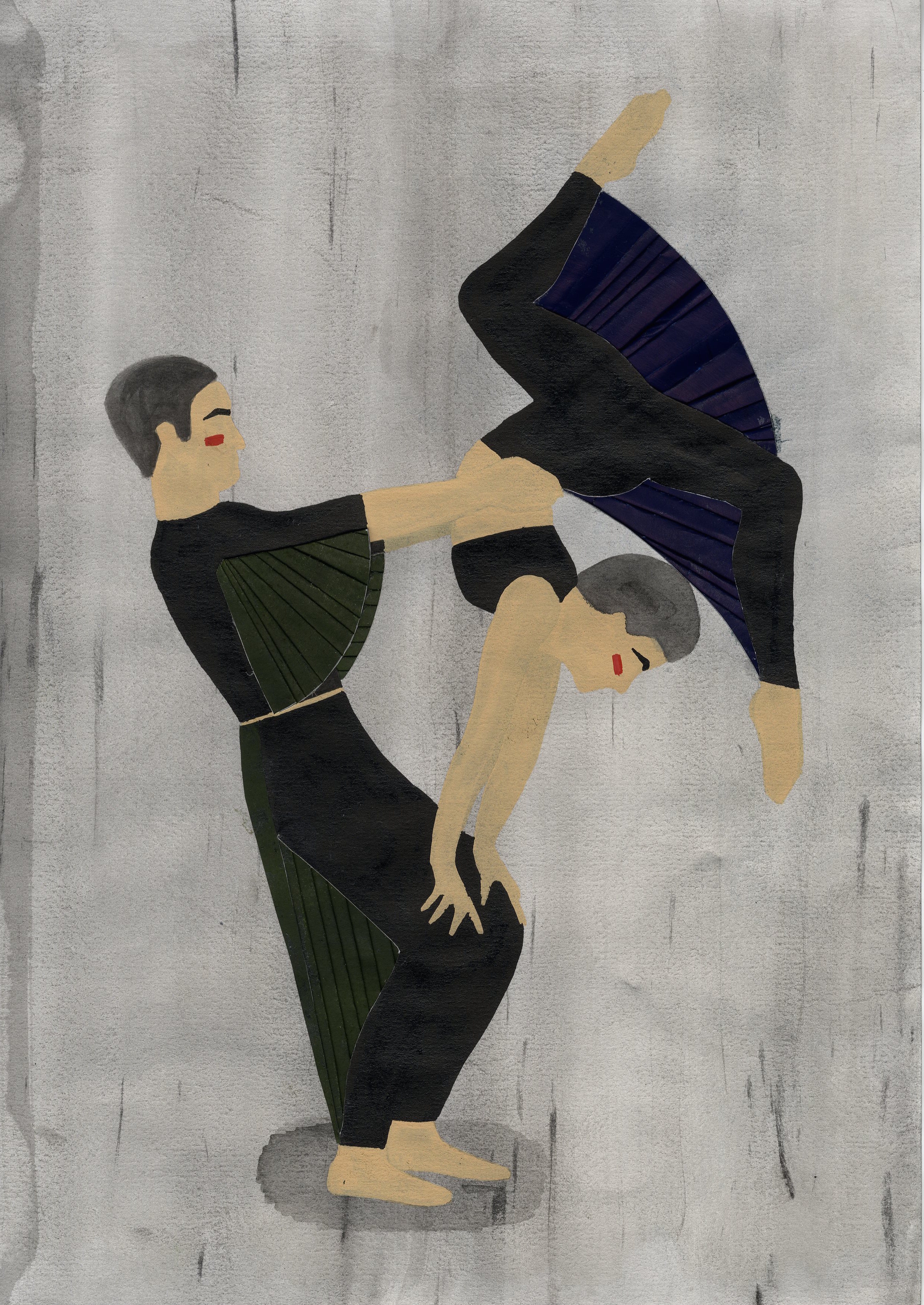 For this project from the 1st year of my degree, we had to design costumes for pairs of circus performers, in a dance piece recreating shots from Alfred Hitchcock’s The Birds. My first set of designs used traditional contemporary dance garments, with pleated fabric inspired by Indian dace costumes. The colours, fabric texture, print and placing of the pleated sections were intended to imitate birds. For the second set of designs, I was directed to go for a ‘sleazy circus’ feel and so I reinterpreted traditional circus costumes for modern dance wear. 2015.