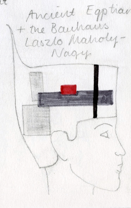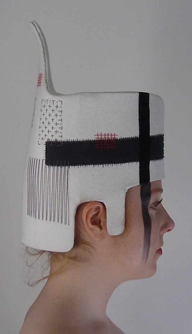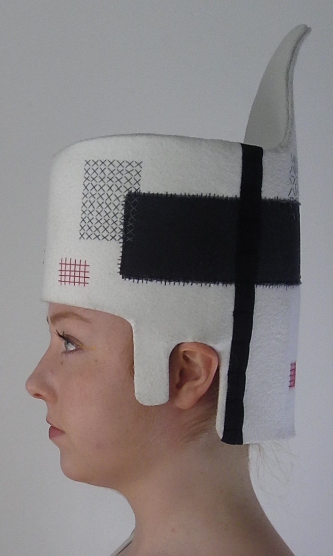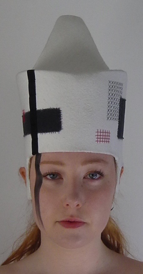 For this project from the 1st year of my degree, we had to design and make a hat. The hat design I chose to make was a result of the prompt “style fusion”, where we were supposed to combine two different styles of art and design. It was a fusion of an Ancient Egyptian headdress and a Bauhaus painting by László Moholy-Nagy. For details of the making process for this project please see my blog post on the subject. 2015.