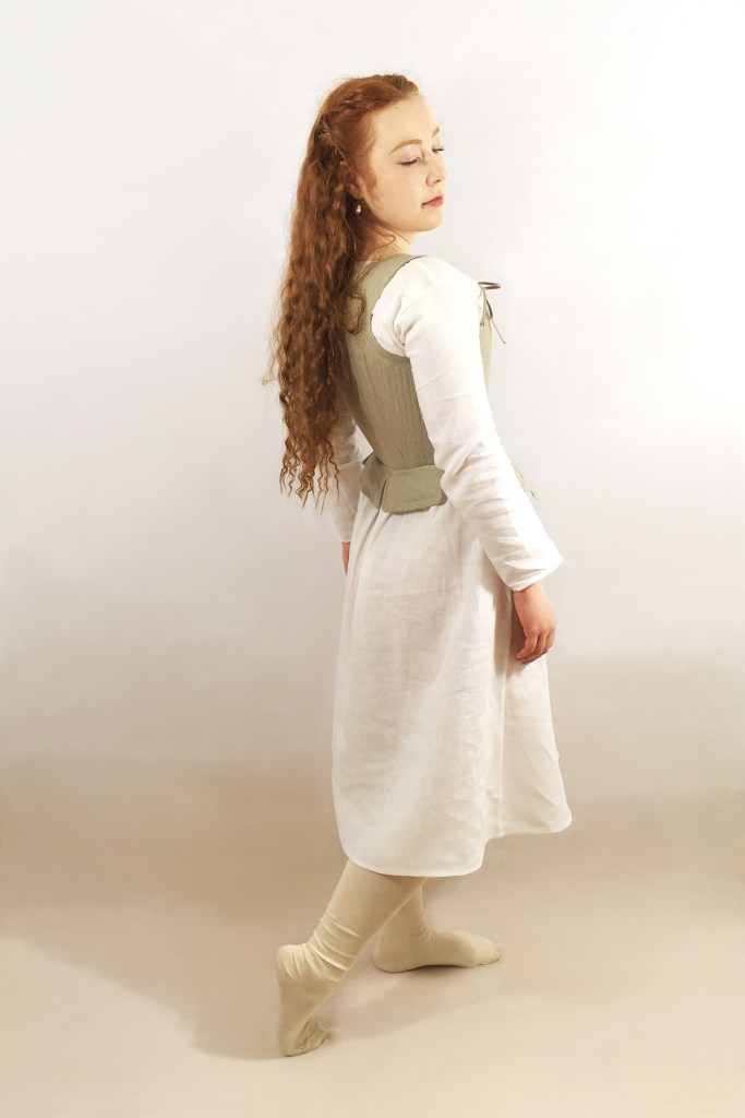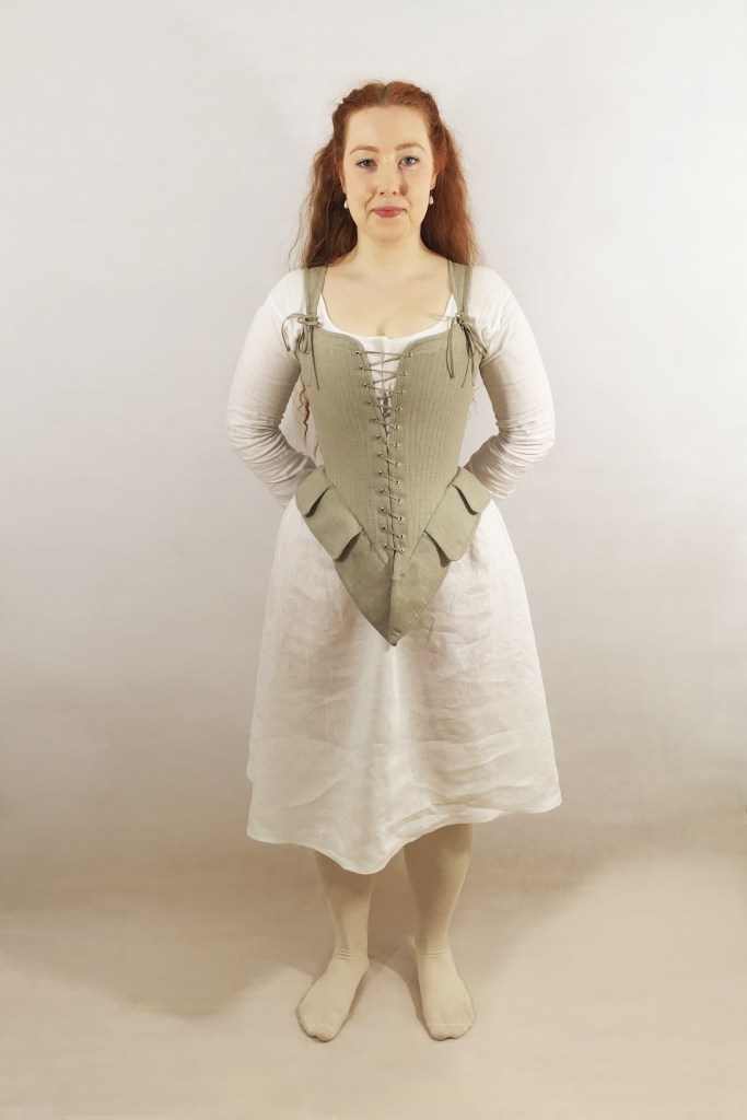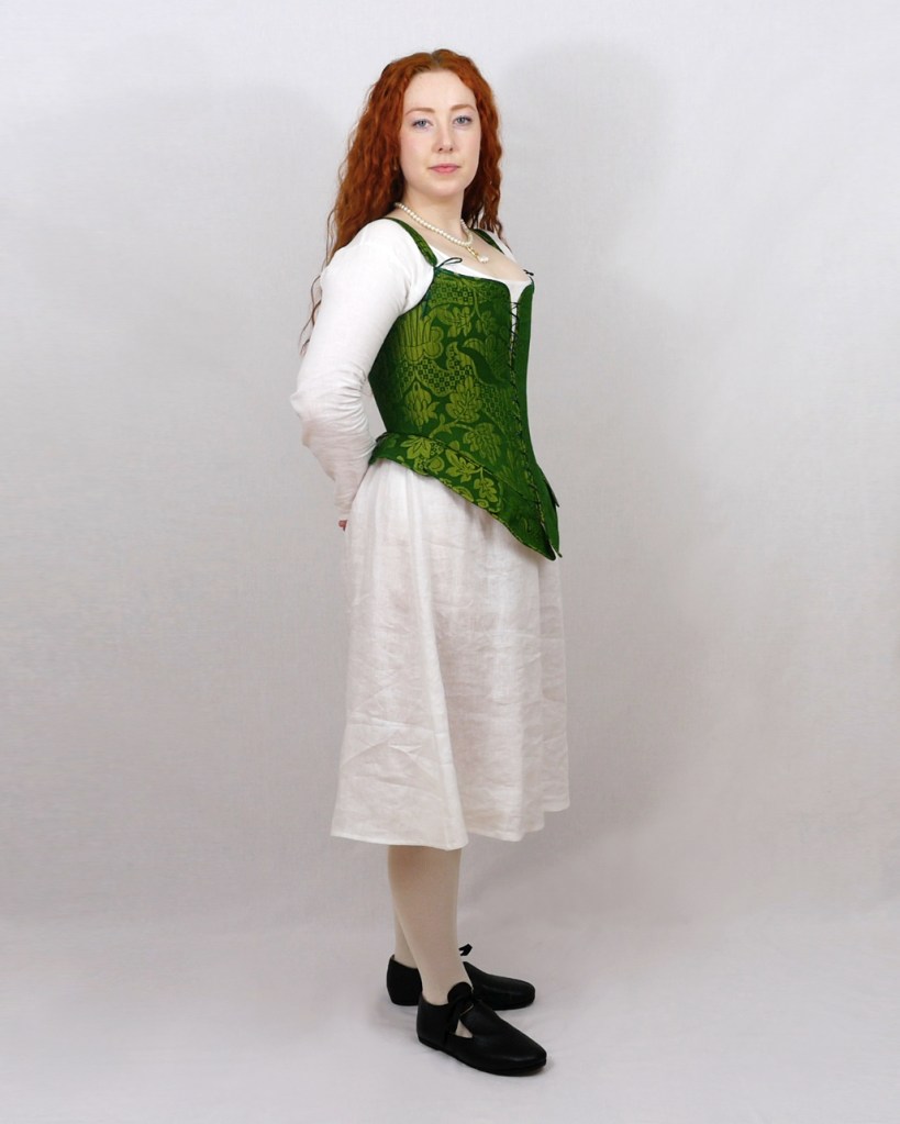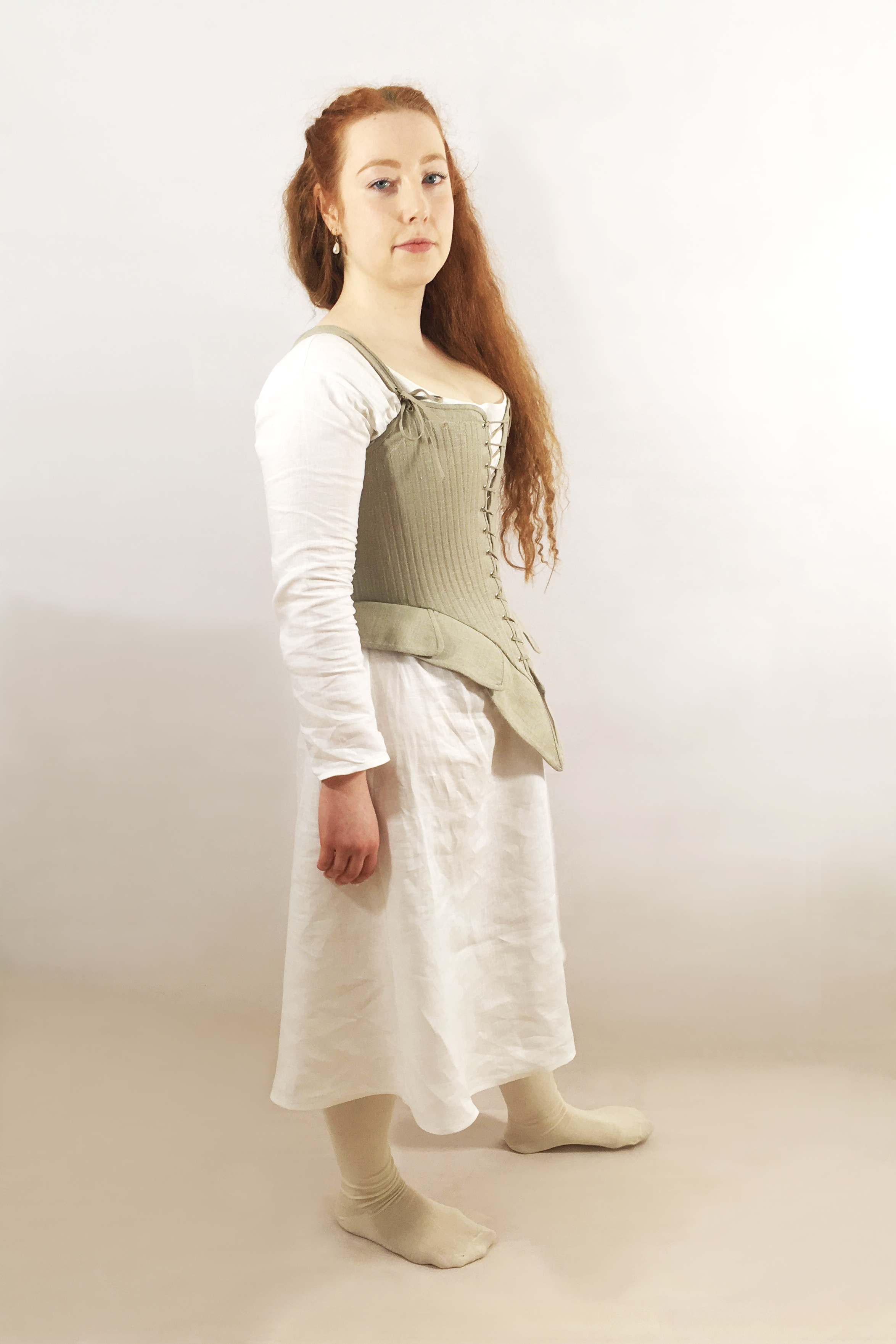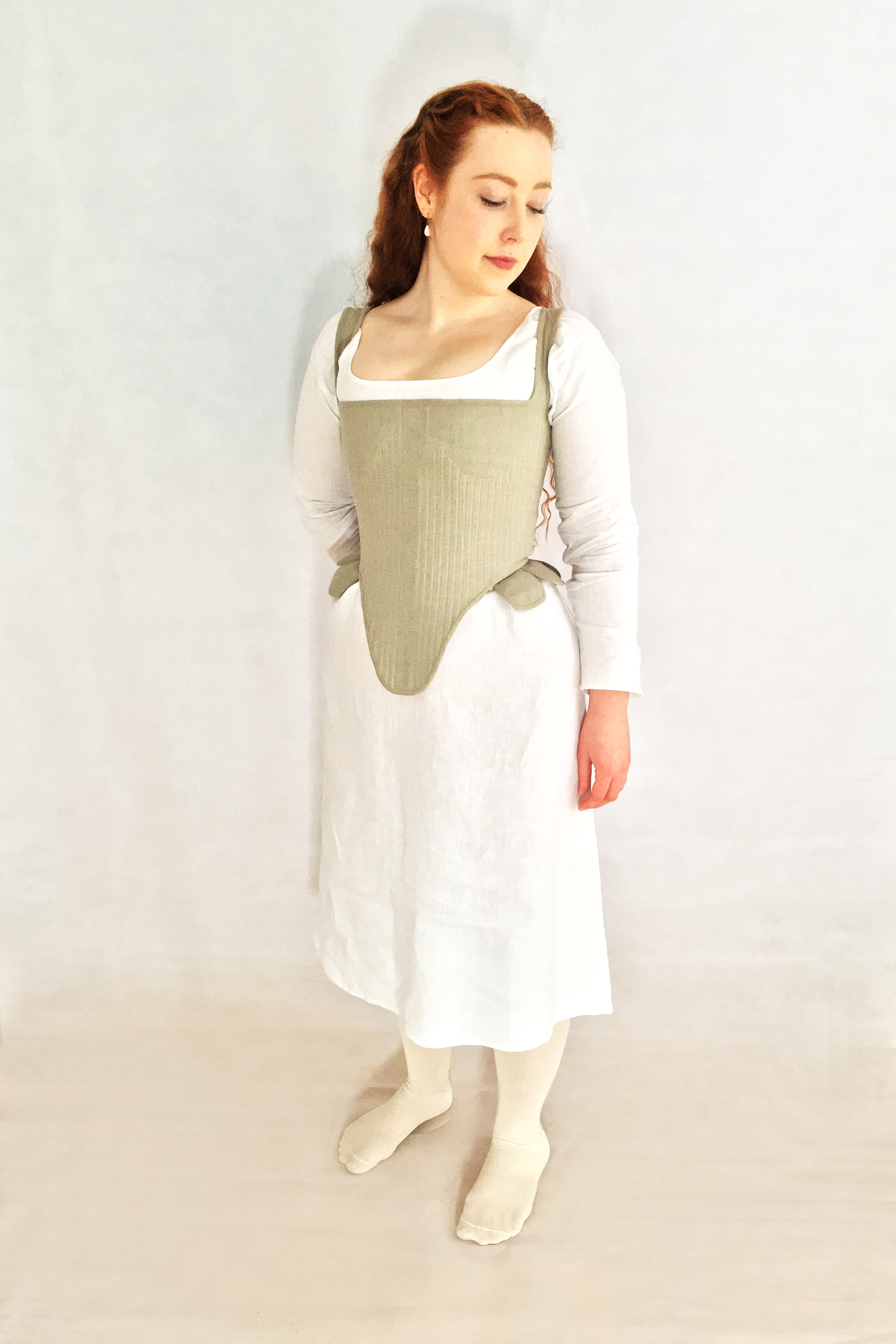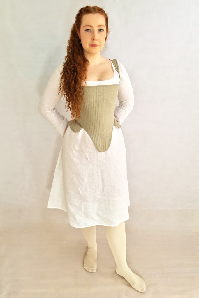 16th Century undergarments were among the first historical items of clothing that I learned to make. I have made smocks, shirts, late 16th Century and early 17th Century bodies, and bum rolls (also know as roll farthingales). The bodies are reproductions of the extant Dorothea Bodies, dated 1598, and the set worn by Elizabeth Vernon in her portrait, dated 1595. I have since made them for clients. 2018 – 2021.