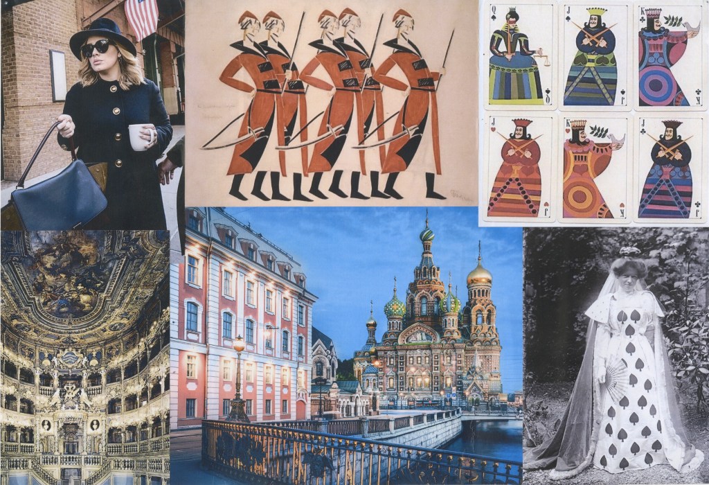 For this project from the 2nd year of my degree, we had to design costumes for Tchaikovsky’s opera The Queen of Spades. I ended up experimenting with collage, using Soviet leaders, Constructivist architecture, and Russian folk dress to create irreverent and surreal designs for my characters. 2016.